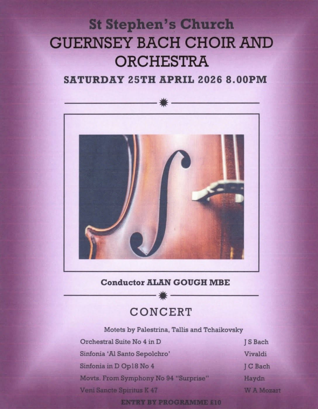 The Guernsey Bach Choir has given several guest performances in Guernsey’s premier concert venue St James Concert Hall, They have an invited orchestra of excellent local musicians to accompany them and are able now to tackle some very demanding repertoire. First-rate professional guest soloists from the UK have also been able to join them, and their appearances have helped produce some truly memorable and thrilling performances.